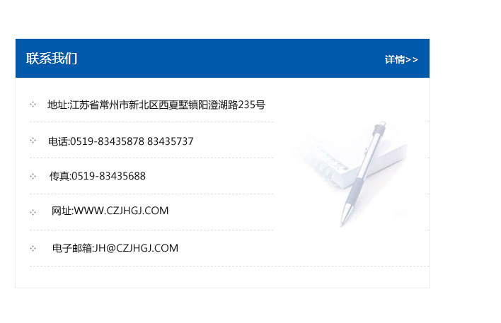 地址:常州市新北區友邦商務大廈1幢16、17層  電話:0519-85101652  傳真:0519-85112595  郵編:213022  網址:www.cz-jiayue_cn.xusjet.com  郵箱:xiajifengaa@163.com
